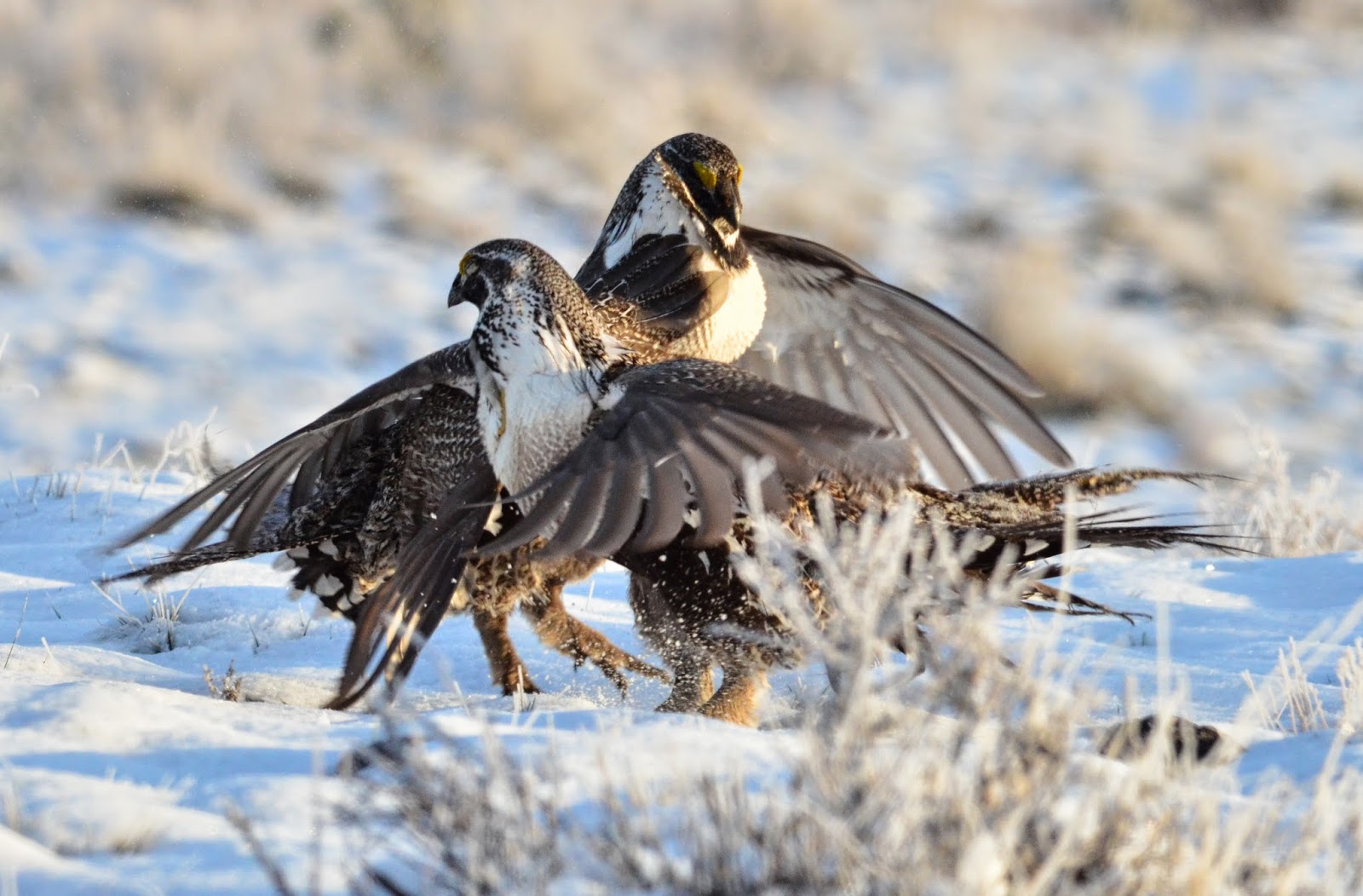 Last weekend we had a great snow storm and with one day left of spring break, I started searching for birds on leks. On a lek that had 40 birds on it last year, I found only 23. This handsome dude attempted to attract one of the three females.